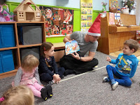 3 grudnia w świątecznym nastroju odwiedził naszą grupę tata Basi, który przeczytał nam dwie książeczki o Świętym Mikołaju oraz Najpiękniejszej Choince. Na zakończenie tata Basi pomógł nam w przygotowaniu prac przedstawiających świętego Mikołaja. Dziękujemy za poświęcony czas oraz zaangażowanie.
