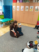 Na zajęciach gościliśmy mamę Ksawerego, powitaliśmy ją zabawą muzyczną z aktywnego słuchania muzyki B. Strauss „Pajączek”. Następnie wysłuchaliśmy opowiadania „Baranek Bronek”.Bardzo nam się podobała ta opowieść, słuchaliśmy jej z wielkim zaciekawieniem i uwagą. Potem wspólnie z paniami wykonaliśmy baranka z papierowej serwetki i podziwialiśmy wspólnie nasze prace.