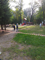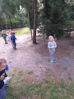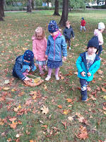 Szukamy Pani Jesieni.Po zajęciach wybraliśmy się na spacer do Parku Chopina poszukać darów pani jesieni. Nazbieraliśmy cały koszyk kasztanów, liści, żołędzi i gałązek dębu, które przystroiły nasz kącik przyrody. Dziś szliśmy bez węża, bo to już najwyższy czas przekazać go maluszkom.