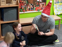3 grudnia w świątecznym nastroju odwiedził naszą grupę tata Basi, który przeczytał nam dwie książeczki o Świętym Mikołaju oraz Najpiękniejszej Choince. Na zakończenie tata Basi pomógł nam w przygotowaniu prac przedstawiających świętego Mikołaja. Dziękujemy za poświęcony czas oraz zaangażowanie.