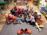 W tym miesiącu w naszej grupie królowała tematyka jesienna. Bawiliśmy się w jesienne zabawy, śpiewaliśmy piosenki, tańczyliśmy oraz tworzyliśmy mnóstwo dzieł plastycznych. Uczestniczyliśmy w zajęciach kulinarnych – przyrządzaliśmy sałatkę owocową oraz warzywne szaszłyki. Korzystaliśmy także z uroków jesieni i bawiliśmy się na świeżym powietrzu. Ostatnie dni października w naszej grupie były poświęcone na przygotowania do Dnia Dyni. Dzieci z dużym podekscytowaniem i radością ozdabiały swoje dynie. Dynie posłużyły nam również do rozmaitych konkurencji oraz zabaw. Zapraszamy do obejrzenia naszych zdjęć.