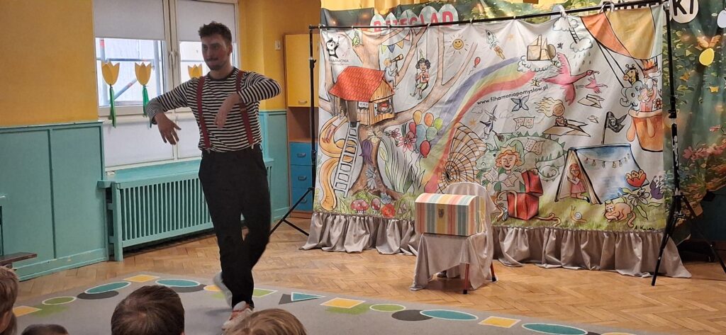 W poniedziałek odbył się kolejny koncert Filharmonii Pomysłów. Dzieci poznały mima i bawiły się z Panem Kotem.