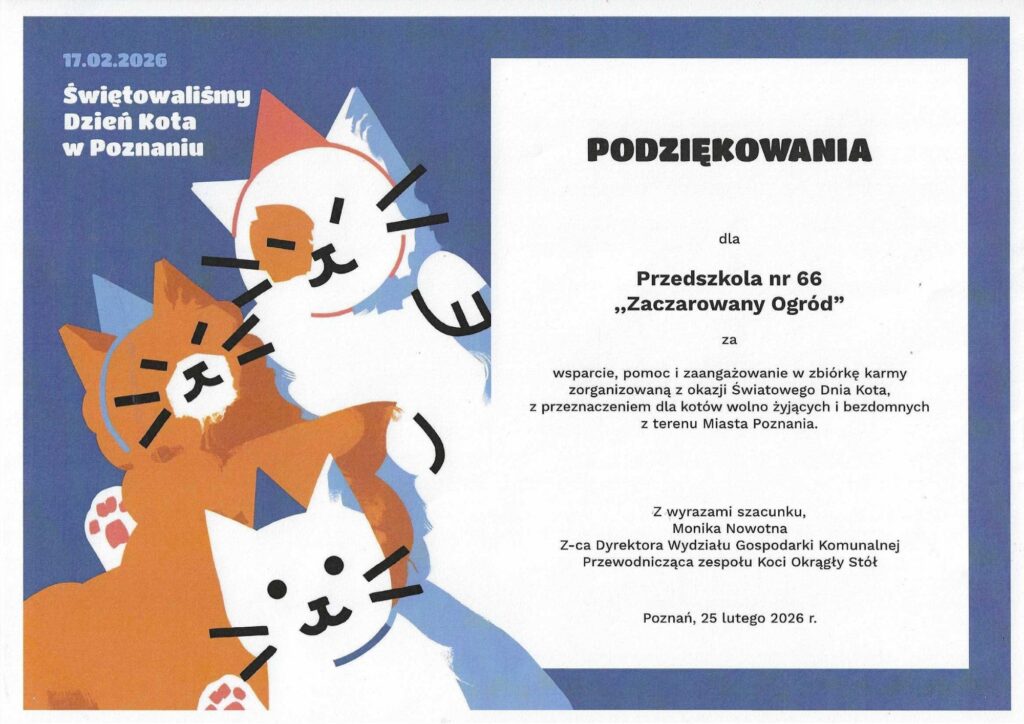 Podziękowanie za zbiórkę kociej karmy