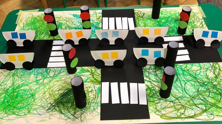 W minionym tygodniu poznawaliśmy zasady ruchu drogowego. Z tej okazji wybraliśmy się na skrzyżowanie, obserwowaliśmy samochody, tramwaje, sygnalizację świetlną oraz pieszych. Uczyliśmy się przechodzić przez ulicę. W przedszkolu zrobiliśmy makietę ulicy z samochodami i sygnalizatorami. Temat bardzo nam się podobał, zobaczcie sami tutaj.