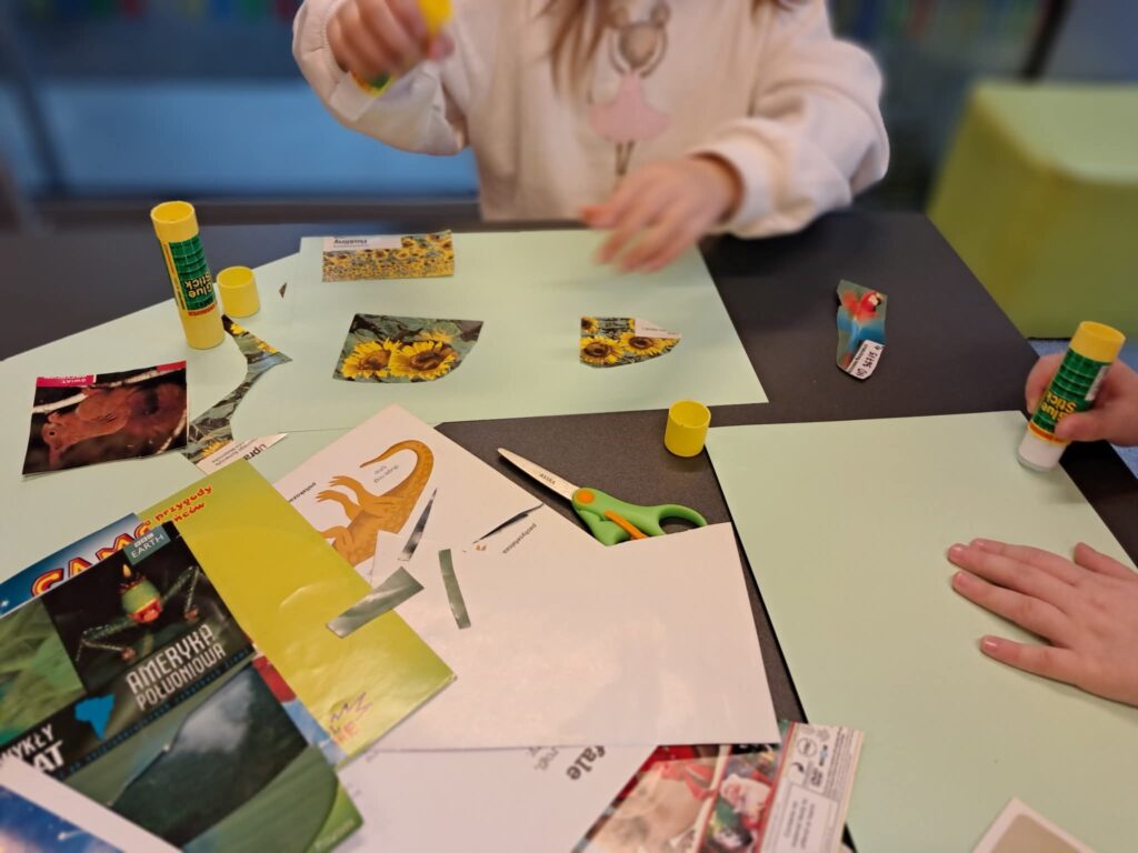 Biedronki w Bibliotece Raczyńskich. Lekcja biblioteczna o drzewach,które są ważne w przyrodzie i musimy o nie dbać i szanować.